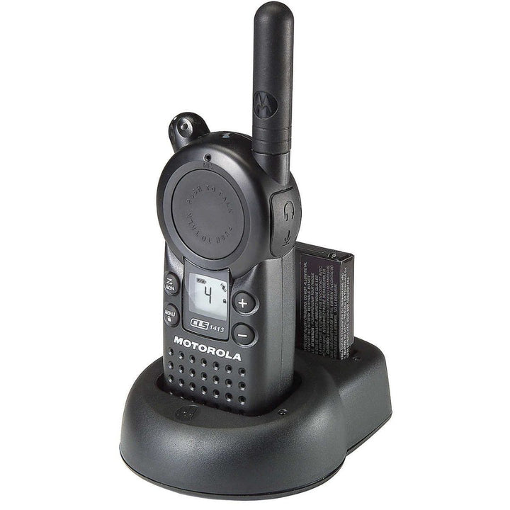 CLS1413 two-way radios are the most advanced in the CLS line. They operate on 4 channels with a choice of 56 business-exclusive frequencies, and have many special features. Each radio ships with a battery, charger, antenna and belt clip.