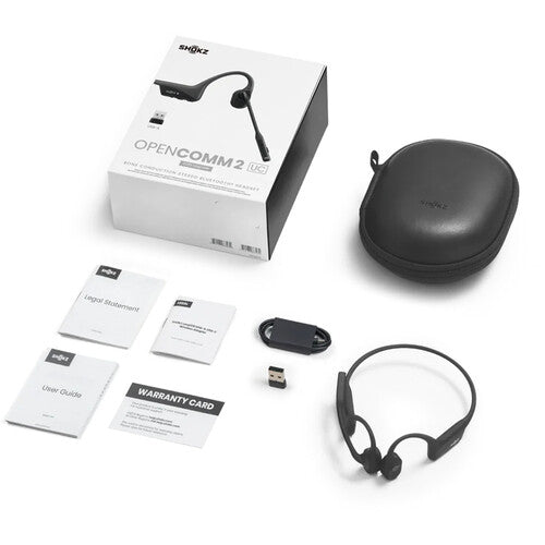 Stay connected to the outside world while embracing comfort and audio quality with the OpenComm2 UC 2025 Upgrade Bone Conduction Wireless Headset from SHOKZ. This headset sports an open-ear design that allows you to remain aware of your surroundings while also remaining comfortable for hours. To provide that, SHOKZ has designed this headset to use 7th-generation bone conduction technology and PremiumPitch 2.0. With both of these technologies, medium and high-frequency sounds are equalized for distortion-free audio. This headset also features a built-in rotating boom microphone with DSP noise-canceling capabilities, 98' of wireless Bluetooth range, up to 16 hours of talk time, 8 hours of listening time, and an IP55-rated water and dust resistance. The OpenComm2 UC headset is fully compatible with PC and Mac devices while using the included USB-A dongle.
